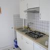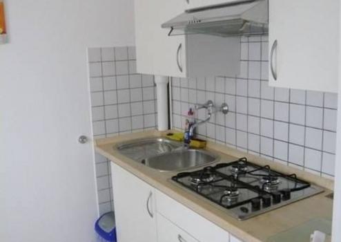Neue Einbauküche komplett ausgestattet, Mikrowelle mit Grill, Kühlschrank, Esstisch, 2 Stühle.