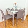 Wohnbereich mit Sofa, Sessel, LED-Flachbild-SAT-TV, Tisch mit 2 Stühlen, Schreibtisch mit Stuhl.