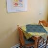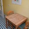 Einbauküche, komplett ausgestattet mit Waschmaschine, Mikrowelle, Tisch mit 2 Stühlen.