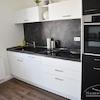 Große Einbauküche, komplett ausgestattet mit Geschirrspüler, Kühl-/Gefrierkombination, Mikrowelle, Herd, Ofen, div. Kleingeräten, Zugang zur