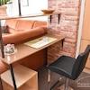Kochnische mit Einbauküche komplett eingerichtet, mit Ceranfeld, Backofen, Mikrowelle, Frühstückstresen mit 2 höhenverstellbaren Hockern.