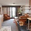 Wohn/Schlafzimmer mit Schrankbett 1x2 m, Ecksofa, Sessel, Wohnzimmerschrank, Regal, Kabel-TV, Teppichboden.