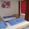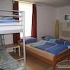 4 Wohn/Schlafzimmer modern eingerichtet mit je 2 Einzelbetten, Tisch, Schrank, Nachttisch.