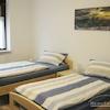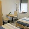 Schlafzimmer mit 2 Einzelbetten (als Einzel- oder Doppelzimmer nutzbar), 2 Nachttische, 2 Kleiderschränke, Sessel, 2 Stühle, Deckenfluter.