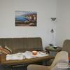 Wohnzimmer mit Couchgarnitur (2er und 3er Sitzecke), Sessel, Couchtisch, kl. Tisch, Sideboard, Esstisch mit 4 Stühlen, 2 Deckenfluter, Kabel-TV (SAT auch möglich).