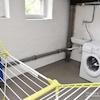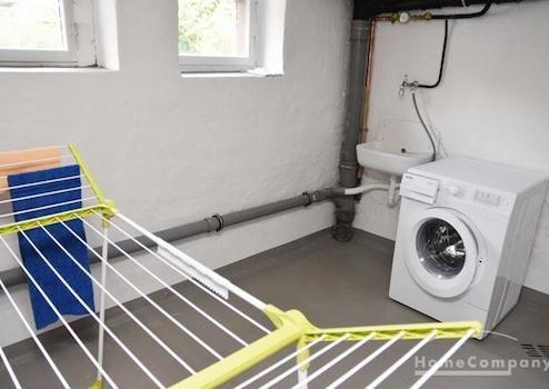 Eigener Kellerraum mit Waschmaschine.