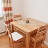Gästezimmer mit Schlafsofa, Schreibtisch mit Stuhl, Ausziehtisch mit 3 Stühlen, Highboard.