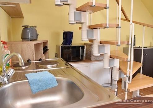 Pantryküche komplett ausgestattet inkl. Geschirr, Besteck, Mikrowelle.