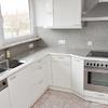 Einbauküche, komplett ausgestattet mit Tisch und 2 Stühlen, Mikrowelle, Geschirrspüler.