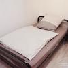 Schlafzimmer mit Bett 120x200 cm, Kleiderschrank, Kommode.