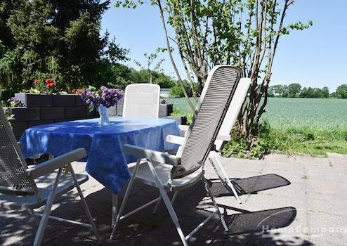 großen Terrasse mit Tisch und Stühlen, Westseite direkt am Feld gelegen,