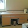 Schlafzimmer mit Bett 180x200 cm, Einbauregal, Kleiderschrank.