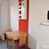 Einbauküche komplett ausgestattet mit Waschmaschine, Tisch mit 2 Stühlen.
