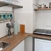Kleine Pantryküche, komplett ausgestattet mit 2 Platten Induktionskochfeld, Kühlschrank mit Eisfach, Coffeemaker.