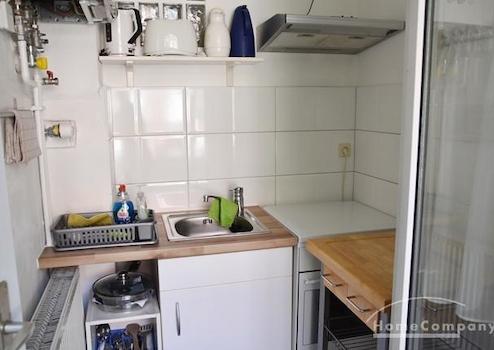 Küche komplett eingerichtet, Zugang zum kleinen Balkon.