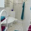 Einbauküche komplett ausgestattet mit Geschirrspüler, Tisch mit 2 Stühlen.