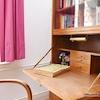 1 Zimmer mit 1 Einzelbett, Schrank, Sessel, Tisch, Sekretär mit Stuhl.