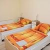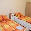 Schlafzimmer mit 2 Betten 90x200 cm (zusammenstellbar), Nachttischchen, Kleiderschrank.