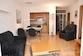 Wohnzimmer mit hochwertigem Federkern-Sitz-/Schlafsofa, Couchtisch, Sideboard mit Kabel-TV, Esstisch mit 4 Stühlen, Flat-Screen Kabel-TV, Laminat, LED-Beleuchtung, Außenjalousie, Zugang zur