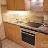 Offene Einbauküche, komplett ausgestattet mit Herd mit CERAN-Kochfeld, Dunstabzug, Geschirrspüler.