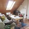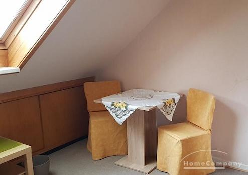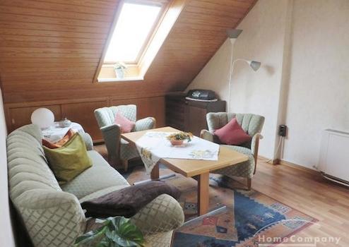 7 km nördlich von Hildesheim - Dachgeschoss-Wohnung im 2.OG, auf einer Seite mit Dachschrägen, Möblierung 60er Jahre.