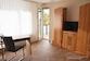 2. Wohn/Schlafzimmer mit Bett 90x200 cm, Kleiderschrank, Schreibtisch mit Stuhl, DVBT-2 TV, 2 Sessel, Laminat.