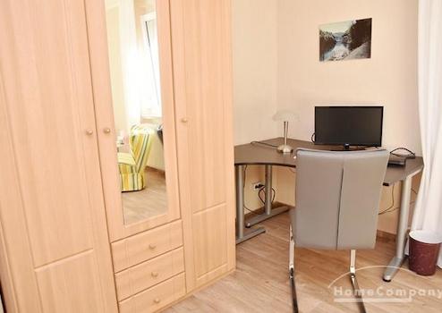 Helle, modern möblierte 1,5 Zimmer Wohnung für 1 - 2 Personen, zentral in Laatzen gelegen. 7.OG mit Lift, sehr schöne Aussicht für Kurzzeitmieten. Wohnzimmer mit Funktionssofa, Couchtisch, Kleiderschrank, Tisch mit 2 ...
