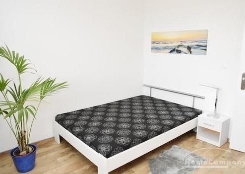Schlafzimmer mit Kleiderschrank, Bett 140x200 cm.
