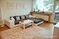 Wohnzimmer mit Funktionssofa, Couchtisch, Anrichte, Tischchen mit 2 Stühlen (Achtung: kein TV), Zugang zum