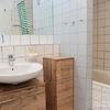 Wannenbad mit separatem WC und Waschmaschine.