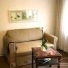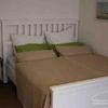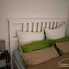 Wohn- und Schlafzimmer mit Bett 160x200cm, Nachttisch mit Lampe, neuem Schlafsofa, antikem Esstisch mit Stühlen TV und CD-Player.