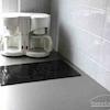 Einbauküche komplett ausgestattet mit Cerankochfeld, Backofen und Kühlschrank.