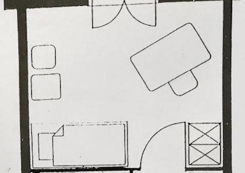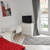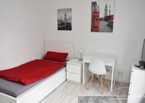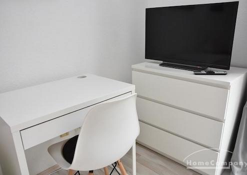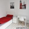 Wohn/Schlafzimmer mit Bett 90x200 cm, Kleiderschrank, Schreibtisch mit Stuhl, Garderobe, Regal, Kabel-TV, Zugang zum