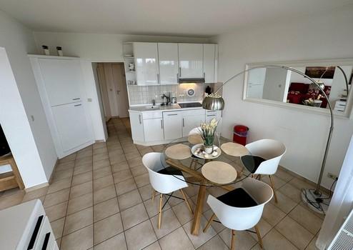 Die 2-Zimmer Ferienwohnung ist optimal für 2 Personen bis 3 Personen ausgestattet. Egal ob Sie am Esstisch oder auf dem Sofa sitzen, immer genießen Sie den atemberaubenden Blick über die Dächer von Duhnen.
