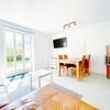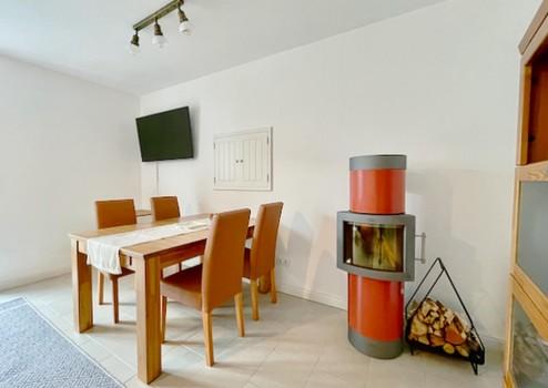 Die Immobilie verfügt über zwei geräumige Schlafzimmer, davon eins mit TV und Zugang zur Terrasse. Auch das große Wohnzimmer besitzt einen Zugang zur Sonnenterrasse. Es hat einen großzügigen Essbereich und einen Designer-Kachelofen (Manufaktur Hase/Trier).
