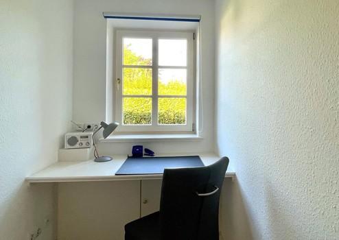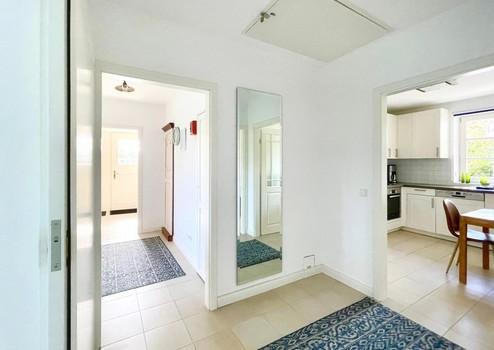 In dem großzügig angelegten Flur gibt es einen zusätzlichen Arbeitsbereich mit eingebauter Tischplatte, ideal für das Home Office.