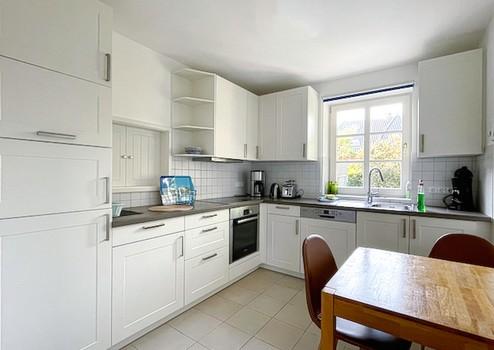 Die helle, moderne Einbauküche bietet viel Platz und ist komplett ausgestattet (hochwertige Elektrogeräte von Bosch: autarkes Kochfeld, Backofen und Geschirrspüler, Kühlschrank mit seperatem Tiefkühlfach, Mikrowelle).