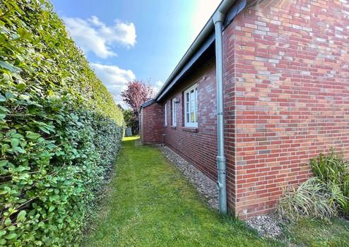 Die Außenanlagen wurden zur selben Zeit ebenfalls neu gestaltet. Pflegeleichte und dennoch individuelle Bepflanzung mit Rosen, Gräsern, Heidepflanzen. Sichtschutz durch Hecken und Sträucher.