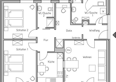 Durchdachter Grundriss, alle Zimmer des Hauses sind barrierearm auf einer Ebene zu erreichen. Ruhige Lage der beiden Schlafzimmer im hinteren Trakt des Hauses. Die Wohnfläche beträgt ca. 92 qm.