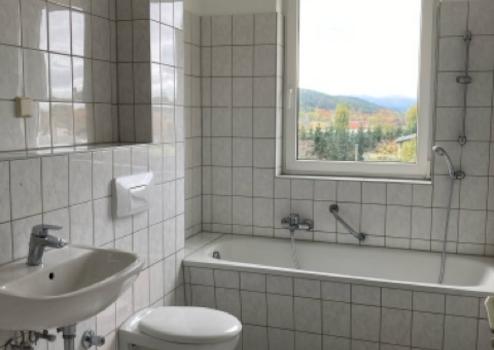 - Ein lichtdurchflutetes Badezimmer mit Badewanne, das Ihnen einen Ort der Entspannung bietet und durch seine Helligkeit und Funktionalität überzeugt.