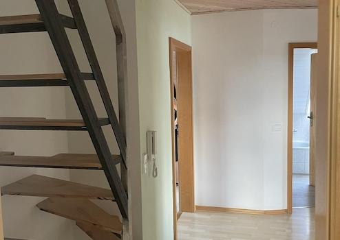 Diese freundliche Wohnung, die sich im DG befindet, kann zum 01.4.2026 bezogen werden. Neben 5,5-einhalb hübschen Zimmern zählen zu der Wohnung ein Badezimmer sowie ein separates Gäste-WC. Eine Besonderheit ist, dass es nicht nur einen Balkon gibt, sondern Sie auch den Garten am Haus zu Ihrer Erholung nutzen können. Eine Einbauküche mit Elektrogeräten wie Herd, Backofen, Geschirrspüler, Kühlschrank sind vorhanden. Desweiteren 1 Stellplatz und 1 Garage für Ihr Auto steht Ihnen zu Verfügung. Ein Kellerraum für die Waschmaschine kann gerne genutzt werden.
