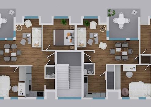 Die einzelnen Wohnungen wurden mit attraktiven hochwertigen Fliesen und hochwertigen Eiche-Parkettböden bzw. hochwertigen Vinylböden ausgestattet. Durch die hochwertige Sanierung und die interessante gefragte Lage ist eine hohe Wohnqualität gegeben. Zu jeder Wohnung gehört ein geräumiger Kellerraum. Ebenso sind ein Waschraum, Trockenraum sowie ein Fahrradraum vorhanden.