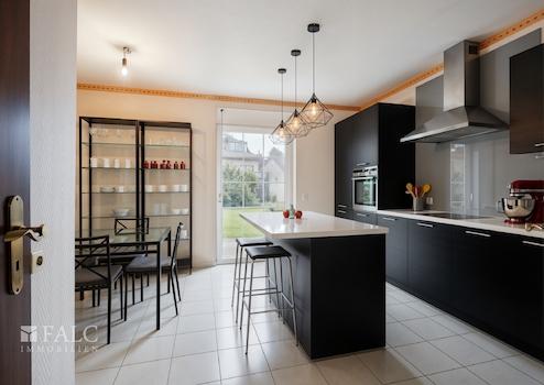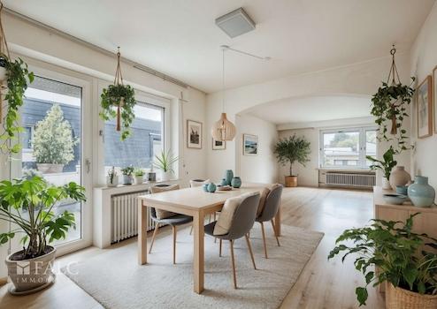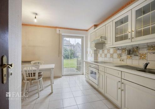 Der Wohn- und Essbereich überzeugt durch seine angenehme Größe sowie den direkten Zugang zu einer der beiden Terrassen, die zum Entspannen und Genießen einladen. Im Erdgeschoss befindet sich zudem ein praktisches Gäste-WC. Von der Küche gibt es einen direkten Zugang zum Garten.