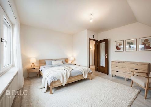 Im Obergeschoss erwarten Sie drei gut geschnittene Schlafzimmer, die flexible Einrichtungsmöglichkeiten bieten. Große Fenster sorgen für eine freundliche, helle Wohnatmosphäre. Das Badezimmer sowie einige weitere Bereiche des Hauses befinden sich in einem sanierungsbedürftigen Zustand – ideal für alle, die Wert darauf legen, ihre eigenen Ideen umzusetzen und modern zu gestalten.
