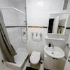 Das Badezimmer verfügt über eine Dusche. Ein Spiegelschrank und indirekter Beleuchtung sowie ein Handtuchheizkörper sorgen für zusätzlichen Komfort.