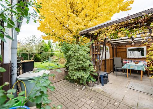 Im liebevoll angelegten Garten finden Sie Ihre persönliche Ruheoase – ein Ort zum Entspannen, Gärtnern oder für Kinder zum Spielen. Das kleine Gerätehäuschen bietet zusätzlichen Stauraum oder Raum für Ihre kreativen Ideen.