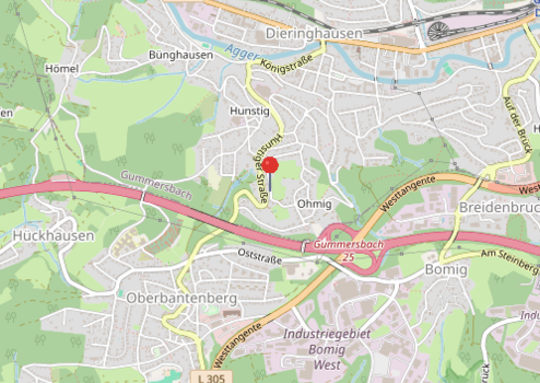 Eine Bushaltestelle (Buslinie 304) („Gummersbach Hunstig“) liegt nur etwa 190 m entfernt.