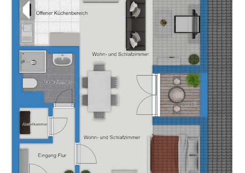 -Großzügiger Wohn-/Schlafbereich (50 m² Gesamtfläche)