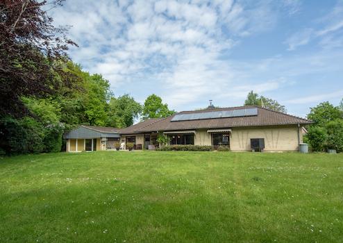 Weitere Besonderheiten des Winkelbungalows ist das Poolhaus inklusive Swimmingpool und Sauna, die Photovoltaikanlage auf dem Dach, eine Wärmepumpe und eine neue Gasheizung, die in 2025 erneuert wurde. Auch Ihr Fahrzeug findet in der Tiefgarage einen trockenen Platz.