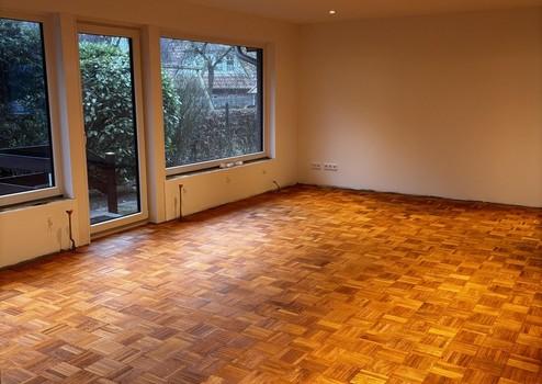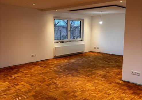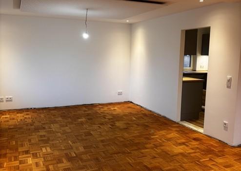 Ein weiteres Highlight ist der großzügige Wohn- Essbereich, der neben dem komplett überarbeiteten Echtholz Stäbchen-Parkett, über ein neues Deckensystem (z.T. mit Akustik Paneelen) mit dimmbaren LED-Spots verfügt und so ebenfalls ein tolles Ambiente bietet. Die außergewöhnliche und große Fensterfront trägt zu einem besonderen Raumgefühl bei.